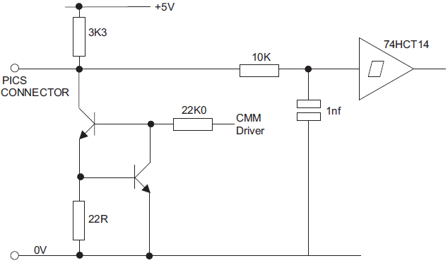 If the CMM uses any of the signals as an input, it must use the appropriate resistor terminations and a Schmitt trigger receiver conforming to TTL levels, such as 74HCT14.