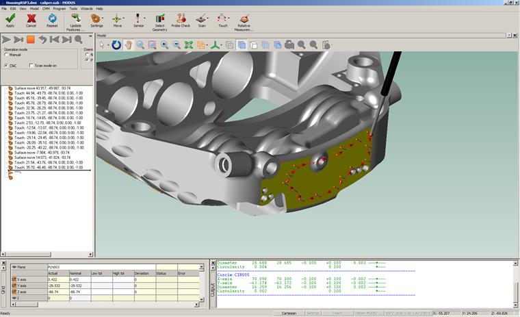 MODUS software provides a powerful platform for 5-axis measurement. A configurable user interface allows native DMIS programs to be developed offline, drawing geometry, embedded dimensions and tolerance data from CAD, with full simulation. The software includes certified algorithms for feature measurement, feature construction and part alignment.