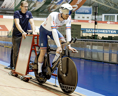 British Cycling is the national governing body in Great Britain for cycling, as recognised by the Union Cycliste Internationale (UCI). It includes eight disciplines of cycling - BMX Freestyle, BMX Racing, Cross Country Mountain Bike, Downhill Mountain Bike, Cyclo-cross, Road and Track, and Cycle Speedway. The track event includes 21 athletes who race around a 250-metre Olympic velodrome track, with banks of varying degrees that can rise to around 42 degrees, enabling them to maintain high speeds.