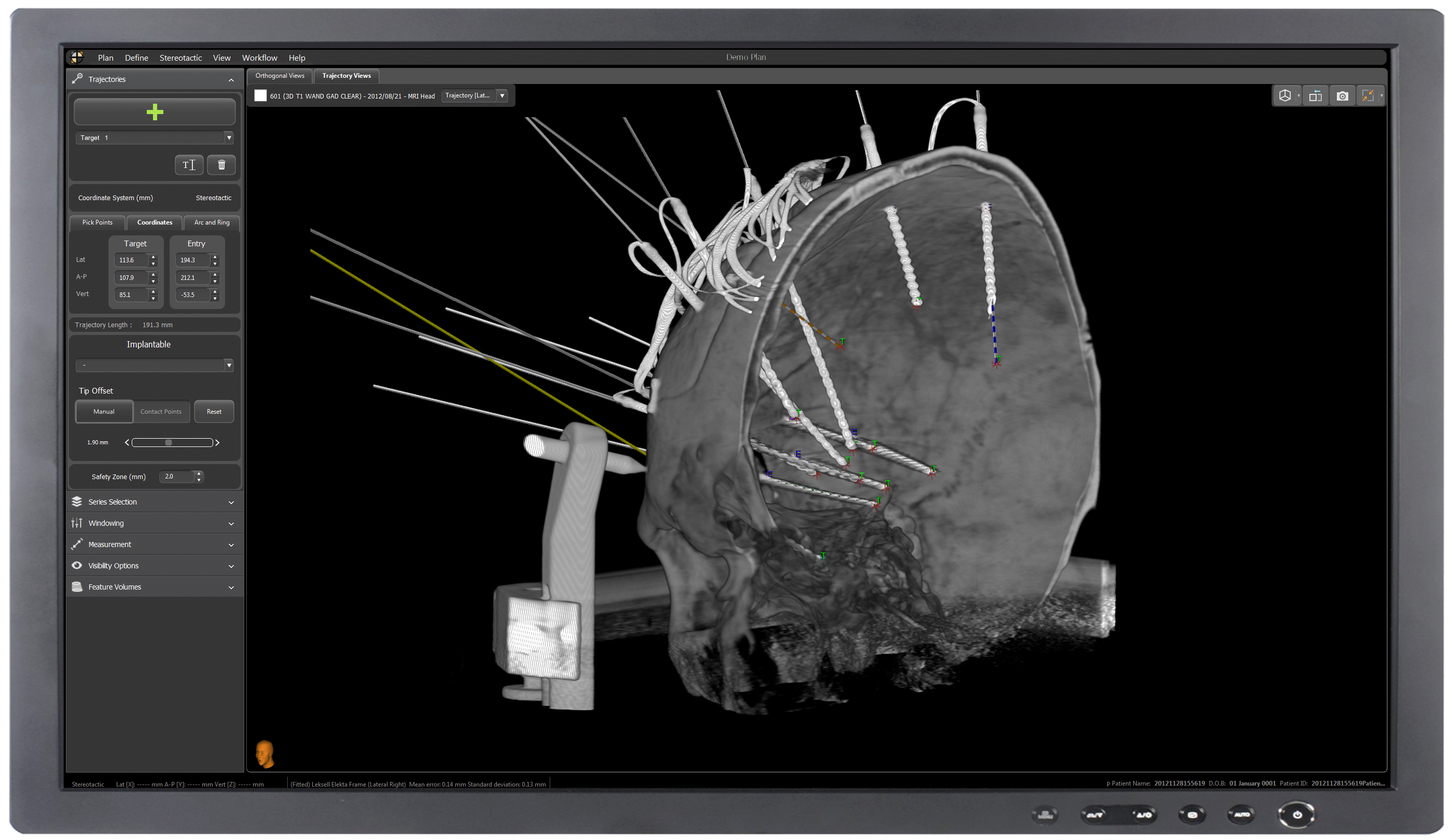 Additional modules for neuroinspire software are available, including region of interest based automatic registration, PACS connectivity for retrieving patient data from the hospital network and the Cerefy Electronic Clinical Brain Atlas for cross-referencing target placement.