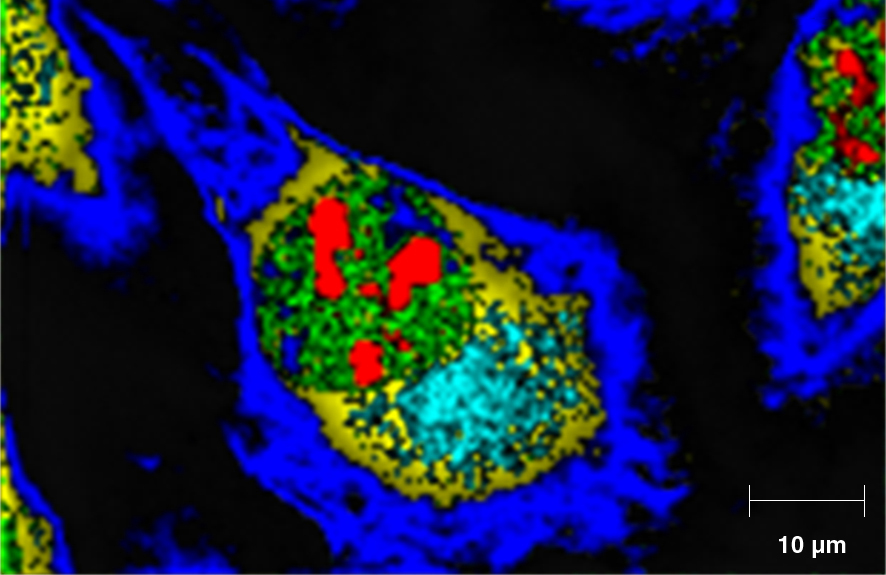 Gather chemical information and produce 3-D views of your samples, and use these to verify the uptake of materials by cells. You can also determine the volumes of the cell and its organelles.