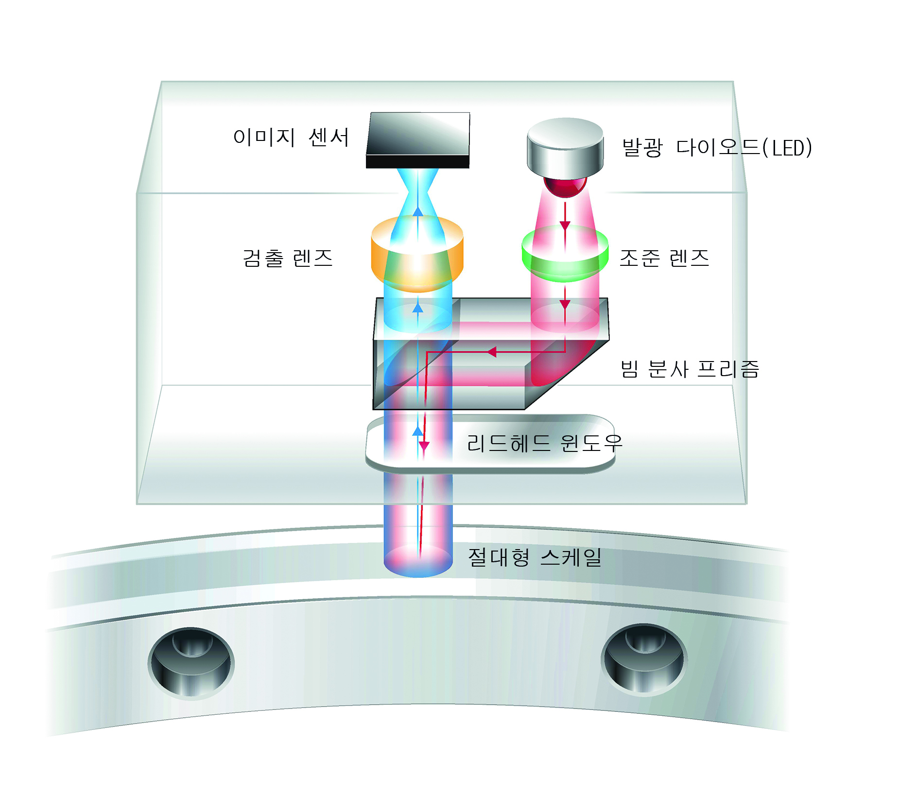 RESOLUTE는 이물에 내성이 탁월한 진정한 절대형, 미세 피치 광학식 엔코더 시스템이면서 위치 피드백의 새 지평을 여는 획기적인 사양을 자랑합니다. 이 제품은 고속에서 공구의 절대 위치를 결정하고 스위치가 켜질 때 절대 위치에 놓일 수 있도록 설계된 맞춤형 이미지 센서가 포착하는 데이터 분석을 위해 최신 DSP(Digital Signal Processor)를 채택하고 있습니다. 또한 진단과 설치를 도와주는 셋업 LED를 내장하고 있고 기본 제공되는 위치 확인 알고리즘이 계산 값을 일정하게 모니터링 하여 다른 엔코더의 계산 오류나 알람을 유발하는 오일 자국의 광 산란 효과까지 극복할 수 있어 안전하고 안정적인 작업이 가능합니다(그림 1 참조).