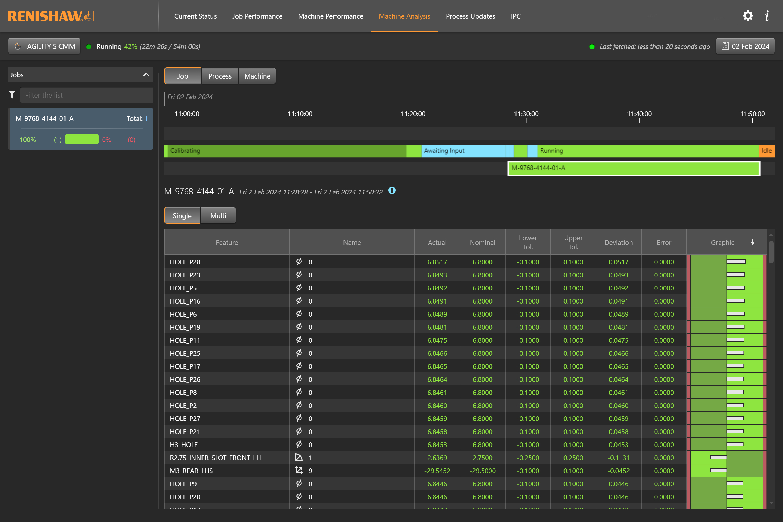 AGILITY S CMM connected to Renishaw Central showing measurement results [gen]