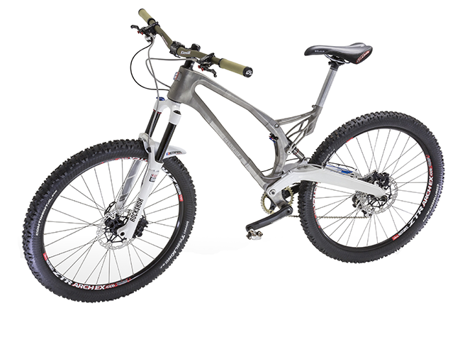 3D 印刷によるチタン合金製フレームとシートポストブラケットを搭載した自転車 (png)