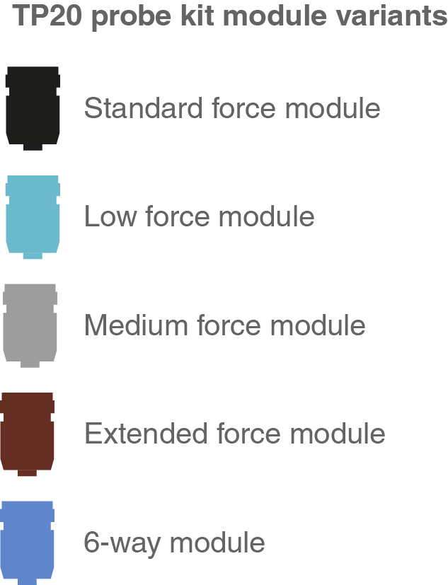 TP20 probe kit #5 Product code: A-1371-0294 TP20 kit image - 1 medium module and 1 extended moduleNo description available[0B] TP20 kit image - 1 medium module and 1 extended module No description available [0B] TP20 medium force module (MF) No description available [0B] TP20 extended force module (EF) No description available [0B] TP20 - dimensions No description available [0B] TP20 module colour - key - outline No description available [0B] Price: $4,899.00 All prices are ex sales tax Limited AvailabilityLonger lead times may apply.Contact us for more information. Add to new group Before you begin to add items to your favourites please create your first group: A favourites group name can only be 1-80 alphanumeric characters and must not begin with white space Product sucessfully added to View favourites Processing request The TP20 is a compact module changing touch-trigger probe. The two-piece design, comprising of a probe body and detachable stylus module(s), allows the use of a range of stylus configurations and extensions to access features on complex parts. Modules can be changed manually or automatically without the need for requalification of the stylus tip. The medium force probe module is identified by a grey cap. This probe module is designed for applications where a higher trigger force than standard is required. The recommended stylus limits for the medium force probe module are: Any stylus type up to 60 mm long Star and cranked styli up to 20 mm offset The extended force probe module is identified by a brown cap. Typically, this probe module will only be required with large stylus assemblies and where spurious triggers caused by machine vibration and acceleration preclude the use of either the standard or medium force probe modules. The recommended stylus limits for the extended force probe module are: Any stylus type up to 60 mm long Star and cranked styli up to 20 mm offset Part NumberDescriptionQuantityA-1371-0284TP20 probe body only kit1TP20 medium force module1TP20 extended force module1 Related products $23.00 Cleaning kit for kinematic coupling mechanisms $4,208.00 MCR20 rack kit for automatic stylus changing with TP20 - rack only $1,225.00 TP20 standard force module $1,225.00 TP20 medium force module $1,225.00 TP20 extended force module $3,413.00 TP20 probe body only $1,225.00 TP20 low force module $1,634.00 TP20 6-way probe module $1,483.00 EM1 standard force module $1,531.00 EM2 standard force module $2,723.00 EM1 and EM2 standard force module kit Shopping security Recall your cart